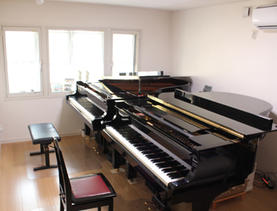2台ピアノの第1レッスン室とスタインウェイの第2レッスン室